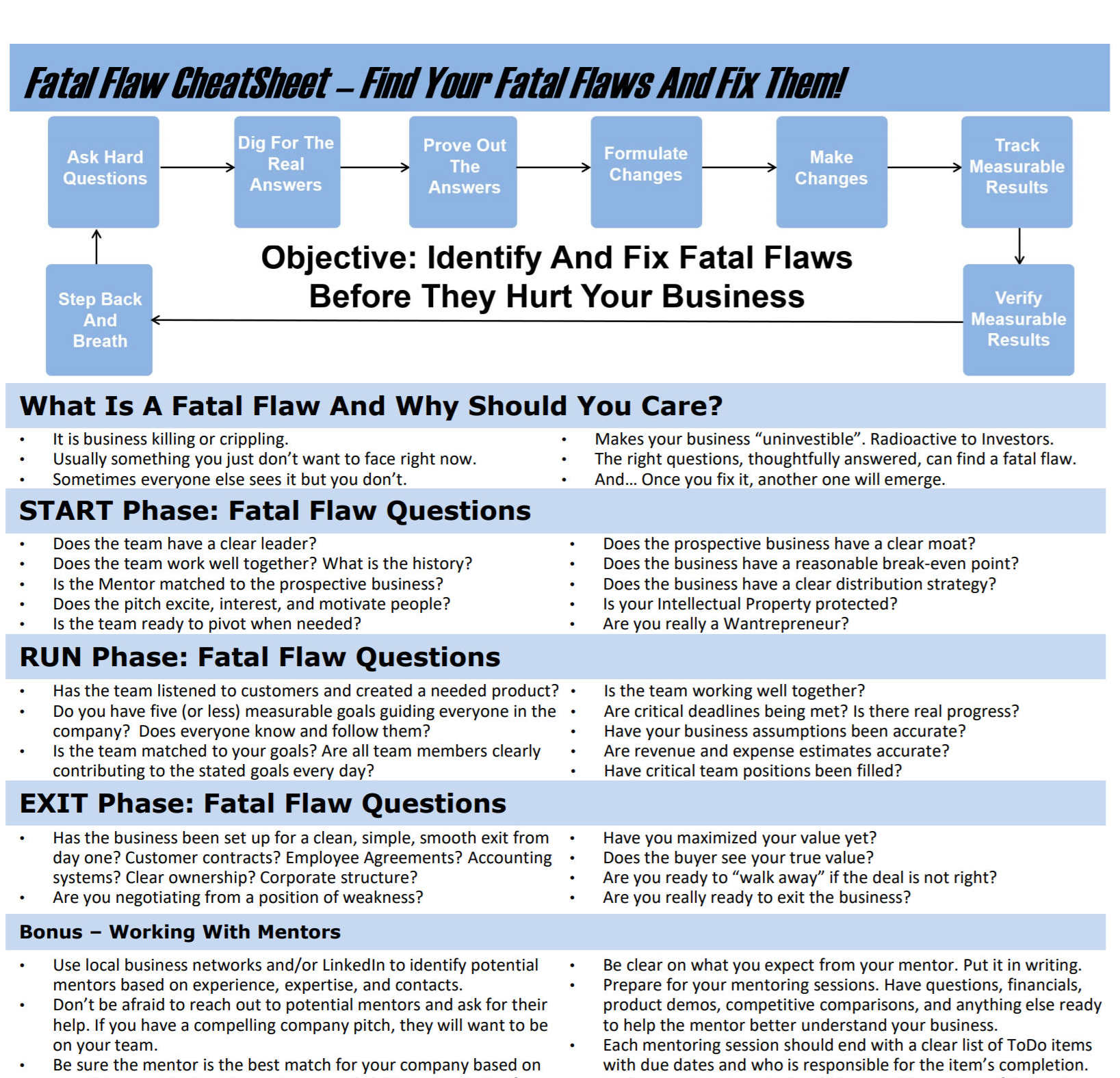 What is a fatal flaw and how can it hurt your business? This cheatsheet provides checklist for every stage of your company from the first day though normal operations to the day your sellout so [...]