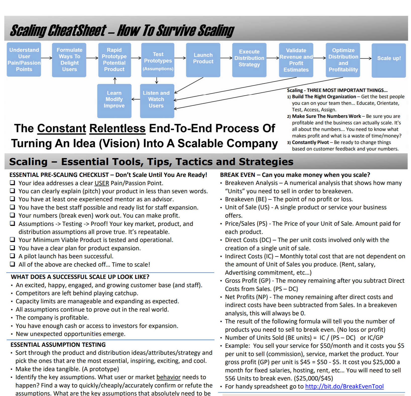 This resource will take you through the end-to-end processes related to Scaling your startup. Includes a Pre-Scaling checklist to be sure you don’t scale until you are ready.